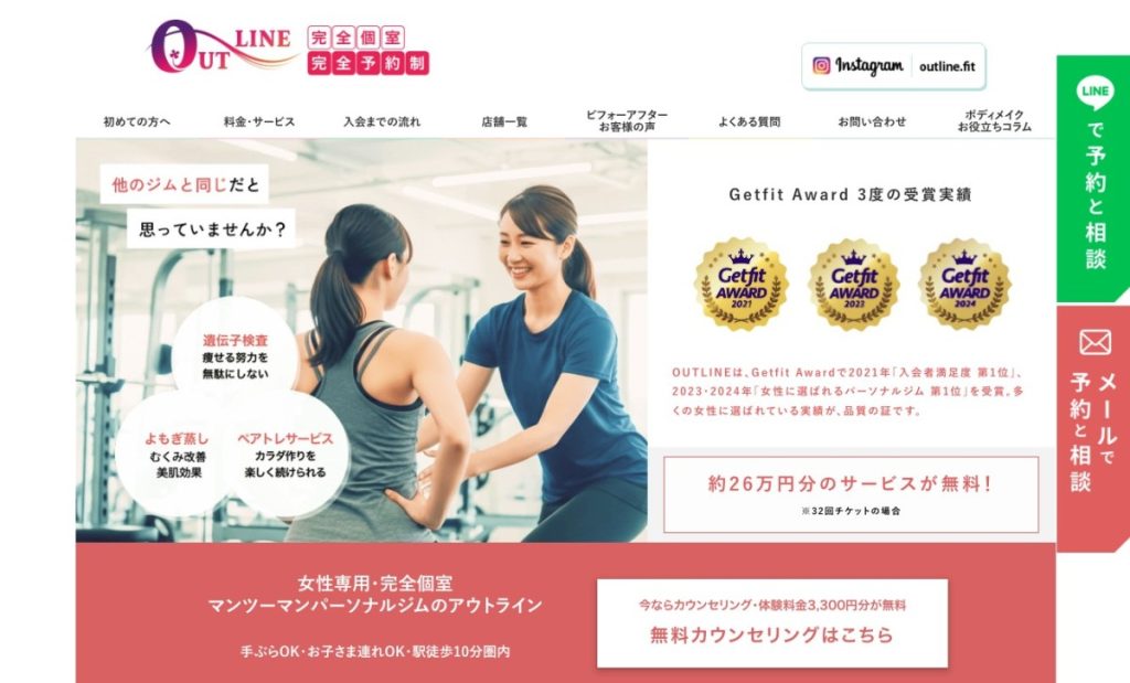 第3位は、女性のボディメイクに特化した「OUTLINE(アウトライン)」です。