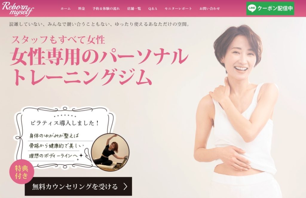 第2位は、女性専用パーソナルジムのパイオニア的存在である「リボーンマイセルフ」です。
