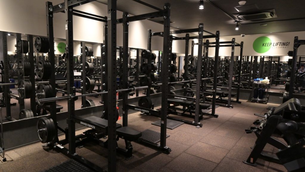 また、フリーウエイトエリアも広々と確保されています。 パワーラックやスミスマシンが複数台あり、ダンベルも高重量まで揃っている店舗が多いです。