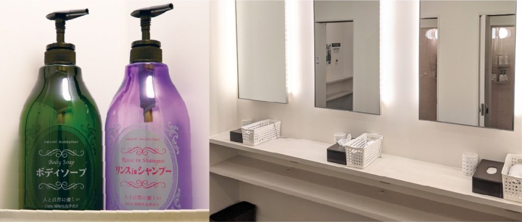 - シャワールームのシャンプー・ボディソープ完備