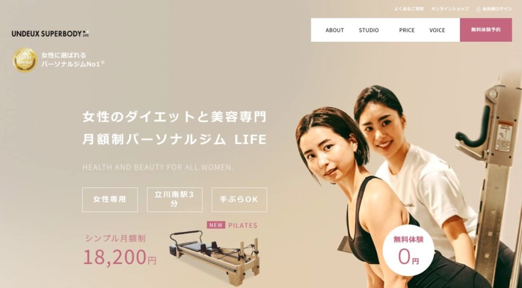 立川エリアで女性専用のパーソナルジムを探しているなら、UNDEUX SUPERBODY(LIFE立川スタジオ)は非常に有力な選択肢です。